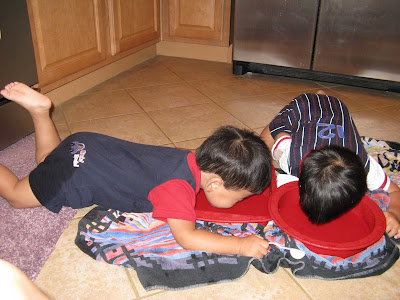 "I'm being good, Mommy. Look at me (Jonathan) sit like a big boy with Jesse and Alex!"